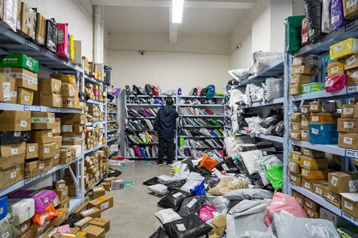 电商购物节中,驿站每天的快递堆积如山。图/视觉中国